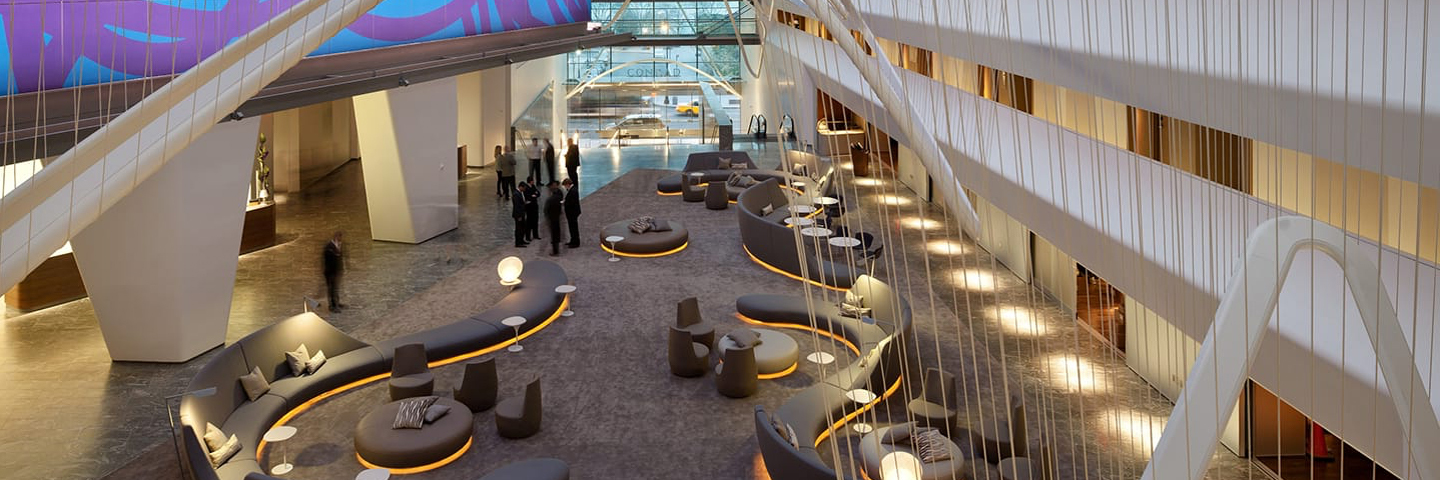 Named for Conrad Hilton, the hotel empire's patriarch, the Conrad remains one of the flagship luxury brands within the Hilton collection. And the Conrad New York is a crown jewel in Lower Manhattan. Across the street from the World Financial Center's bustling offices, the newly completed Freedom Tower, and Brookfield Places's famous Winter Garden shops, it's perfect not just for business travelers but also for families, with an in-house movie theatre and easy access to Battery Park and the Hudson River greenway.