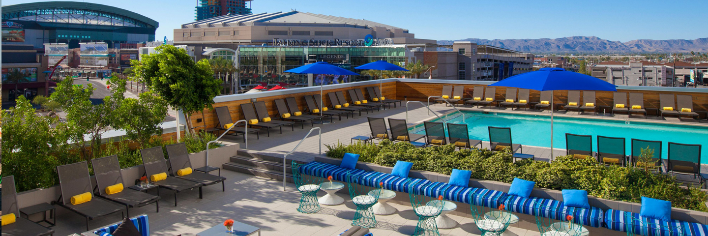 With a prime downtown CityScape location for shopping, dining and nightlife hub, the Palomar Phoenix ditches the Old West for a new frontier of style and comfort. Accommodations start at a spacious 400 sq' and are well appointed with iHome docking stations and Frette linens. This upscale Kimpton boutique hotel also features local hot spot LUSTRE Rooftop Garden as well as Blue Hound Kitchen & Cocktails for seasonally inspired chef-driven cuisine with artisanal wines, craft cocktails and locally brewed beers.