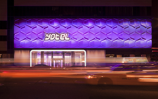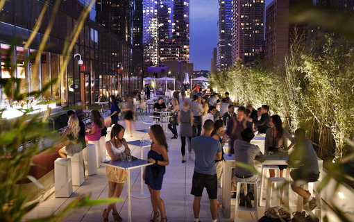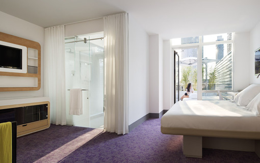 When you aren't working New York hours using the free wi-fi or 24-hour gym, enjoy Mediterranean fusion at Green Fig restaurant, or host an event in one of the brightly colored private entertainment rooms, get some air at the Terrace by Social Drink & Food with stunning views of the skyline from the city's largest hotel terrace.